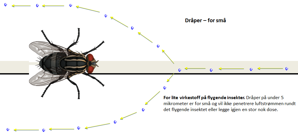distribueres i et gitt luftvolum over en kort tidsperiode. Når disse dråpene treffer et insekt,